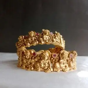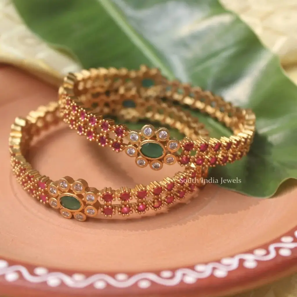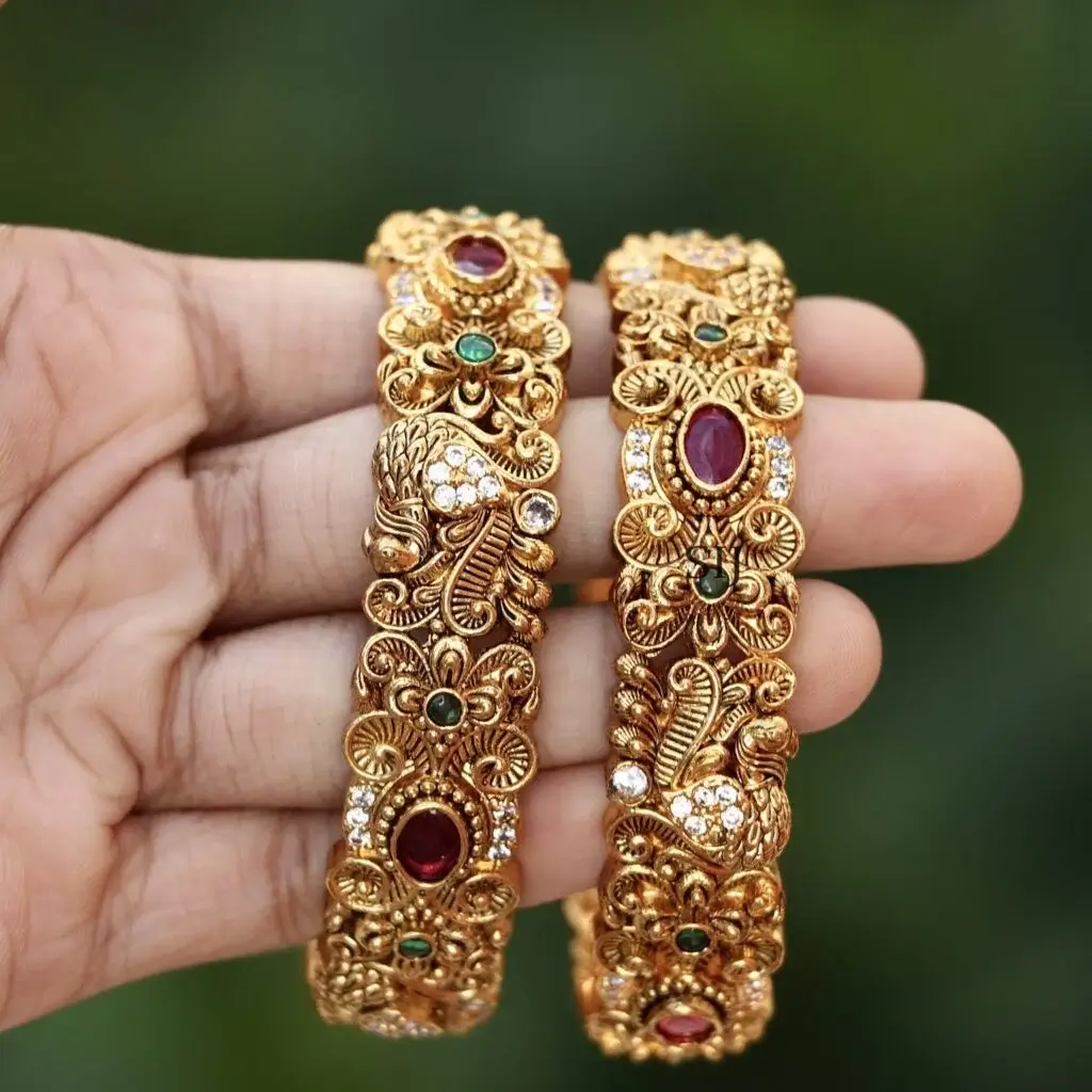 Furthermore, every jwellery collection features captivating designs such as the Matte Finish Kemp Floral , Set of 4 Kemp and Ruby Flower Bangles — each crafted with intricate detailing and radiant stones. In addition, these bangles highlight the timeless beauty of Indian artistry, combining floral motifs, polished finishes, and vibrant hues that add a regal touch to your look.Jewellery bangles in valanchery