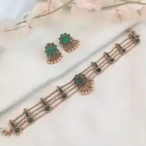 The Emerald Floral Coin Choker is a beautiful piece and that combines the So beauty of traditional.